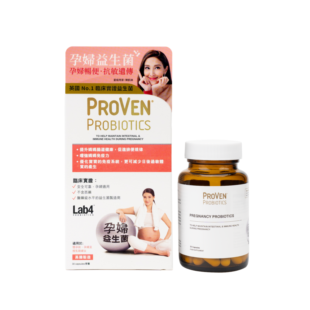 英國 ProVen 益生菌孕婦配方專為計劃懷孕、懷孕中和授乳期婦女配製而成的益生菌補充劑,選用世界專利 Lab4b 益生菌配方,有超過30年的科研及英國權威大學支持,並於多個世界級臨床測試中,證實於腸道健康及免疫系統上都有多種好處,更有效減低孕媽媽在孕期各階段會遇上的不適症狀,例如孕吐、噁心、乳房脹痛、消化不良、皮膚痕癢等。ProVen 孕婦配方更有效減低父母把過敏症遺傳給BB的機會,測試證實可由近80%過敏遺傳機會減至30%或以下。長遠提升 BB 的免疫系統,減少日後產生過敏體質,嬴在起跑線!
