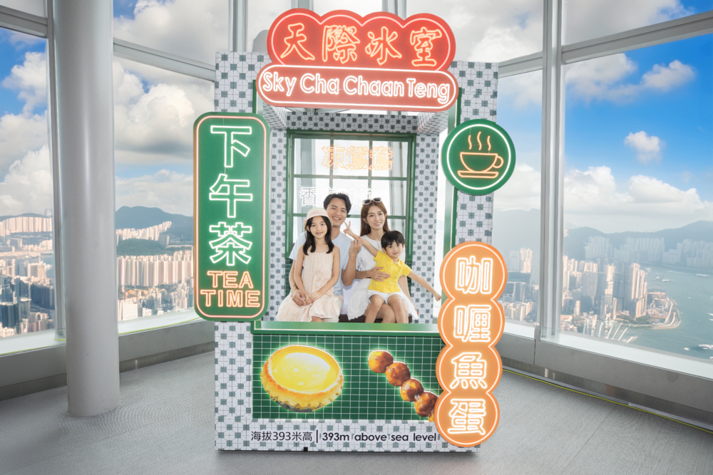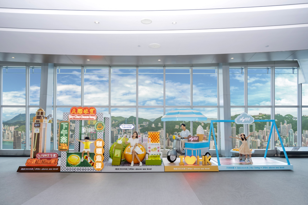 觀景台特設 5 大熱爆港式經典主題打卡佈置,糅合香港文化同人氣小食元素,展現傳統冰室、 閃耀霓虹燈同具有歷史建築嘅果欄等特色街景,喺 360 度無遮擋壯麗景致襯托下,拍攝出港式風情嘅相片,締造難忘回憶!