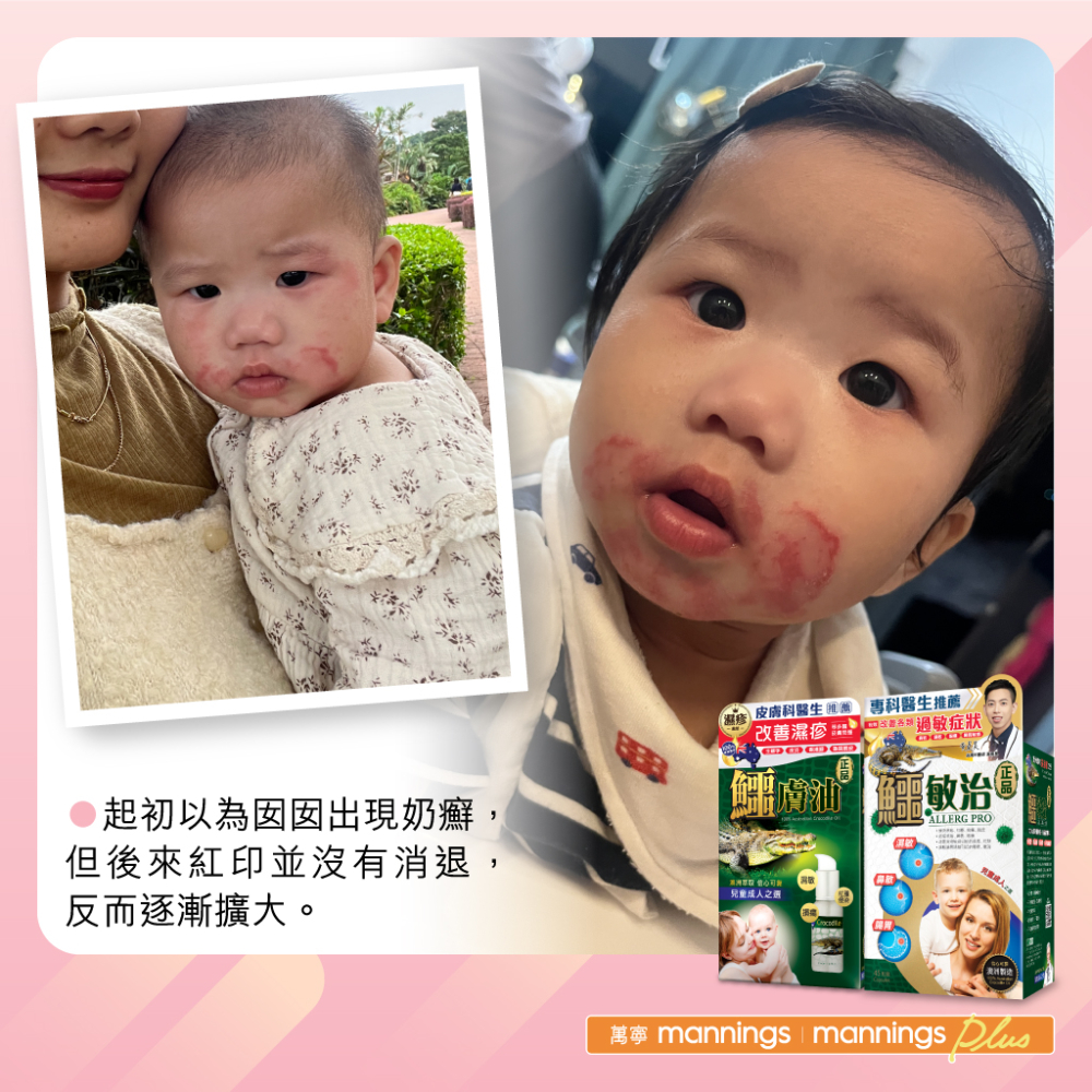 踏入秋夏,天氣時熱時涼,BB 幼嫩肌膚未必適應得來,容易引發濕敏。當濕敏發作時,BB 皮膚痕癢難耐,更會抓得皮破血流,讓父母不知所措之餘,更是無比心痛。對於媽媽 Candy 來說,她半歲大囡囡 Xanthe 的皮膚狀況正正如此。最初 Xanthe 面部出現了一些紅印,Candy 以為只是輕微的皮膚問題,但不久後,情況卻變得越來越嚴重。