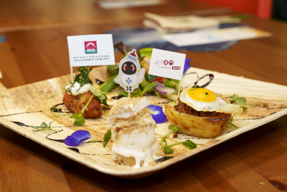每位嘉賓都可品嚐到4款澳門特色小食:傳統葡式吞拿魚沙律、炸馬介休球、澳門葡式乾免治、木糠布甸,造型精美之餘味道也很出色,一眾KOL也舉起拇指大讚美味!