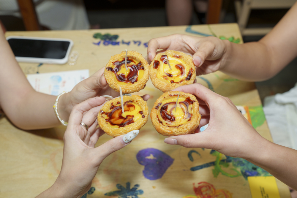 澳門早於2017年就獲評定「創意城市美食之都」,而提到澳門美食,葡撻當然有一席之位!當天除了茶會,也邀請了手工蠟燭導師Carman 教大家製作葡撻造型蠟燭,雖然有很多參加者都沒有很製作手工蠟燭的經驗,但在導師耐心又清晰的教導下,大家的成品像真度十分高,有參加者表示葡撻手工蠟燭不但造型幾可亂真,更真的有葡撻的香味!