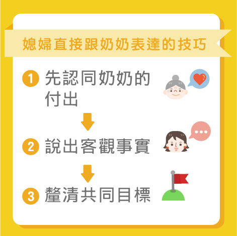 如果要跟奶奶表達,以下步驟可以作為媳婦們的參考: