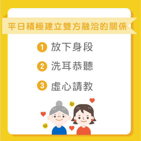 3)平日積極建立雙方融洽的關係