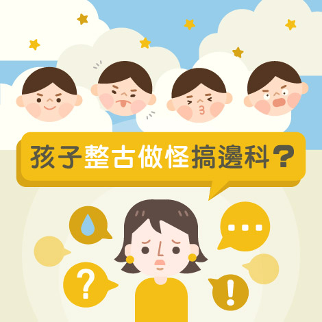 有些孩子喜歡在公眾場所、交通工具或學校做出一些古靈精怪的行為,例如:手舞足蹈、高聲唱歌、大叫大嚷等情況,確實會令父母大感尷尬及無所適從。其實,父母只要找出孩子出現這些行為的背後原因,再對症下藥,例如:運用「故意忽視」的方法、引導他們在適當的場合做適當的行為、提供合適的機會和空間讓子女發揮潛能,可以大大減少他們做一些古怪行為的機會,大家不妨試試。
