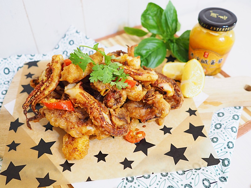 近來鹹蛋黃非常火熱, 雖然唔健康, 但卻又令人難以抗拒, 而我家QB不知由何時起, 已變了鹹蛋黃粉, 只要菜式有鹹蛋黃在內, 必定會乖乖自動自覺地吃飯. 早前在網店訂購了兩樽鹹蛋黃醬, 貪用起來方便. 反正邪惡, 今次以酥炸魷魚鬚加入鹹蛋黃同炒, 鹹香惹味極了, 偶爾一次半次也沒所謂了, 的確令人吃到停不了口.