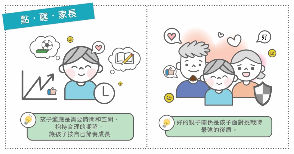 當然每個孩子面對新挑戰時遇到的困難都不一樣,但當家長能為孩子提供所需,成為他最強的後盾,相信孩子很快能享受校園生活。