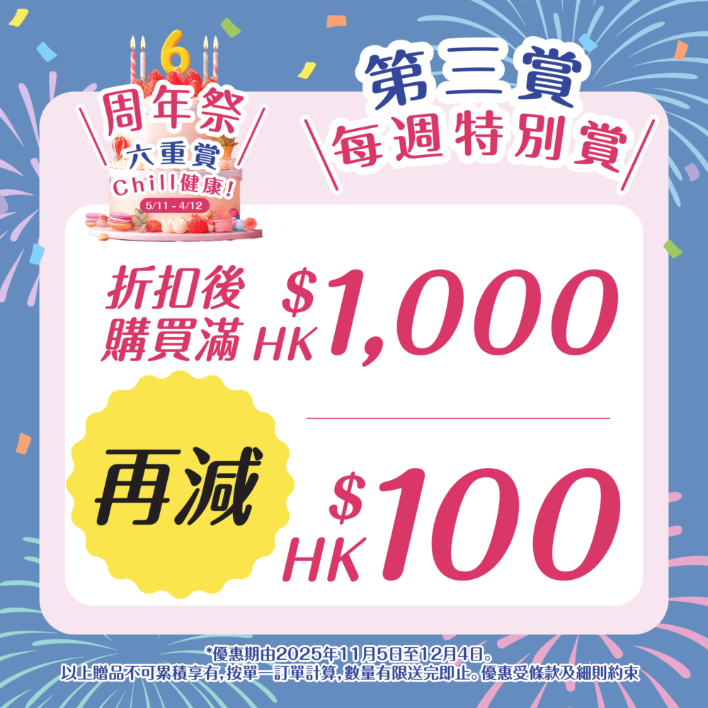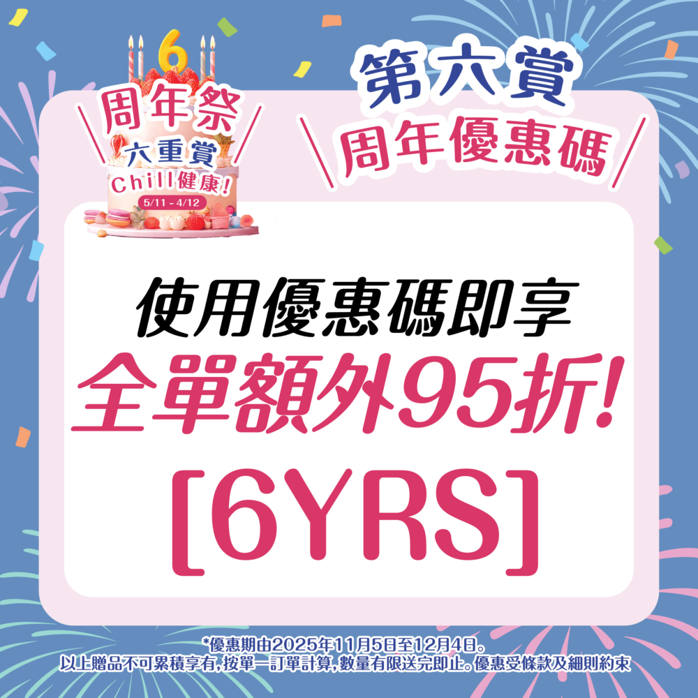 - 無論你買幾多,埋單嗰陣,記得輸入 [6YRS],全單即享額外95折!折上折先係最精明!
