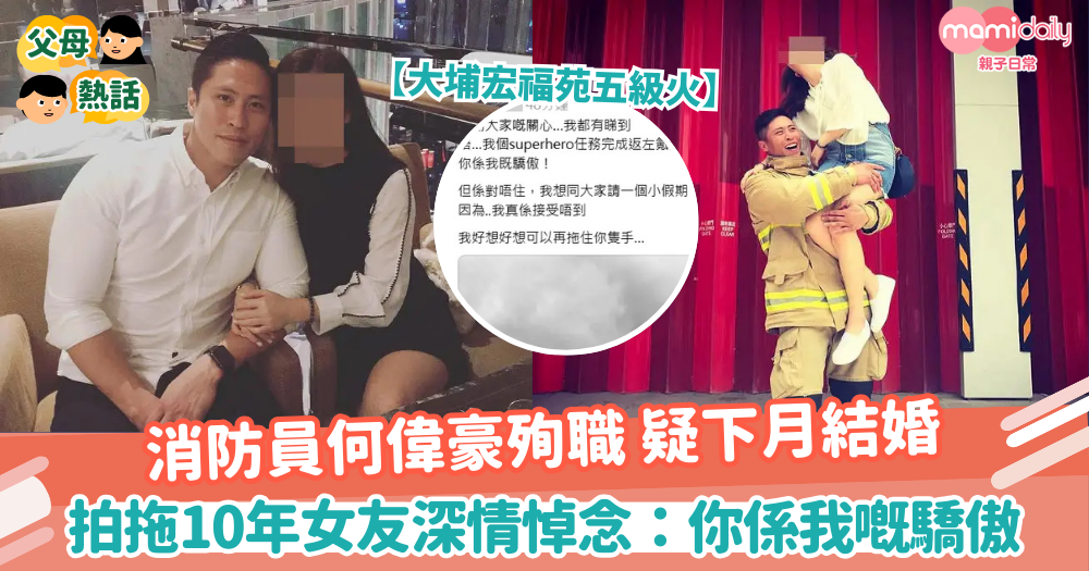 【消防員殉職】大埔宏福苑五級火 | 消防員何偉豪殉職 疑下月結婚 拍拖10年女友深情悼念:你係我嘅驕傲
