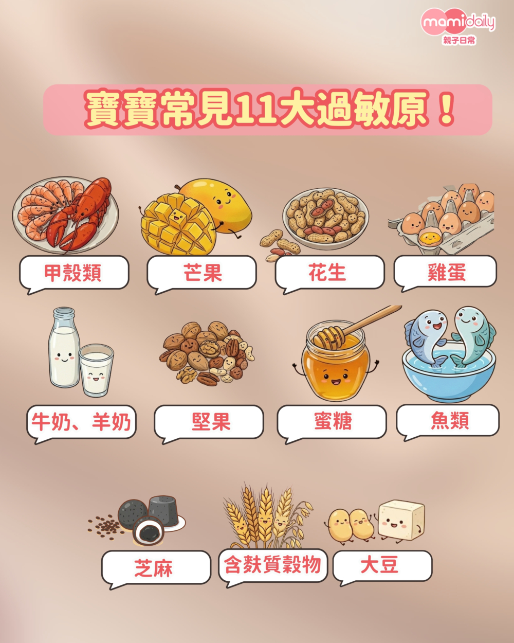 準備 BB 加固必睇!整理雞蛋、牛奶、花生等 11 大常見過敏原。教你如何安全試敏,並挑選三文魚低水銀魚類,守護寶寶健康發育,避開致敏風險!