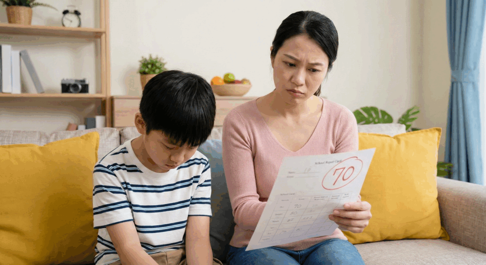 有位家長前來向我訴苦,說不知道怎樣教仔,原來之前兒子拿了張數學測驗卷給她簽名,該卷得100分,家長大讚個仔「聰明」、「叻仔」,誰知最近兒子拿了分數只得70分的數學測驗卷給她簽名,她大為失望,立即問他:「點解得70分,退步咁多?」兒子不懂得回答,自此和媽媽減少溝通。