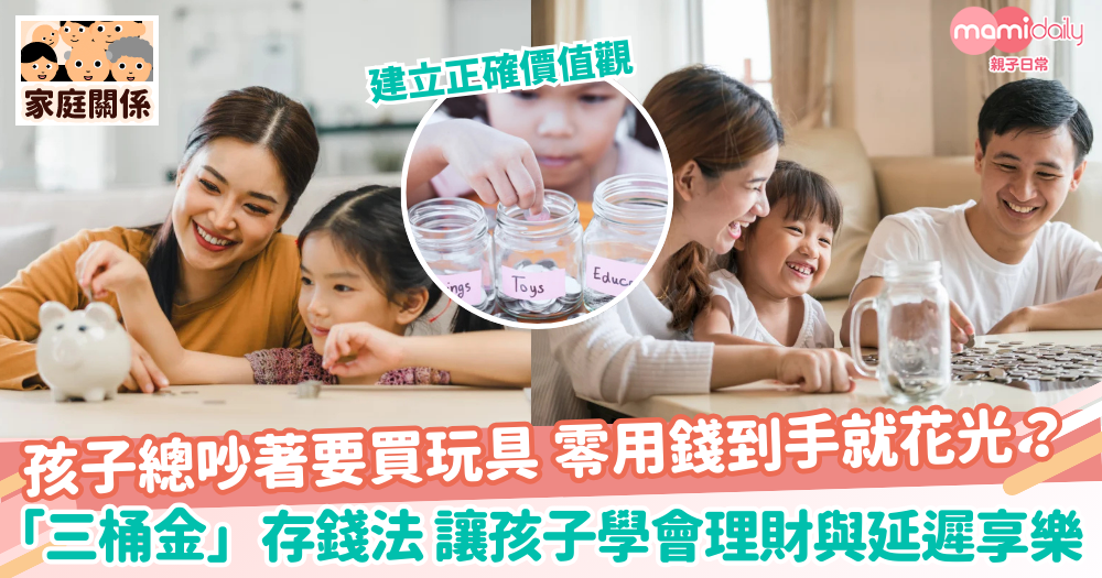 【存錢法】孩子總吵著要買玩具 零用錢到手就花光?「三桶金」存錢法 讓孩子學會理財與延遲享樂