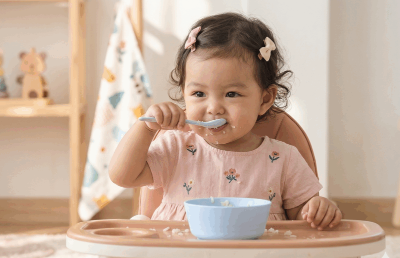 9個月開始寶寶開始戒夜奶。可以吃軟爛泥狀水果,如香蕉、蘋果等,每日約1-2湯匙作為兩餐間的點心。