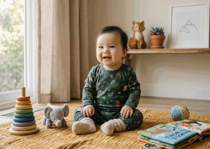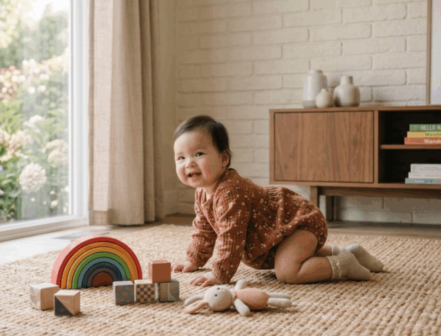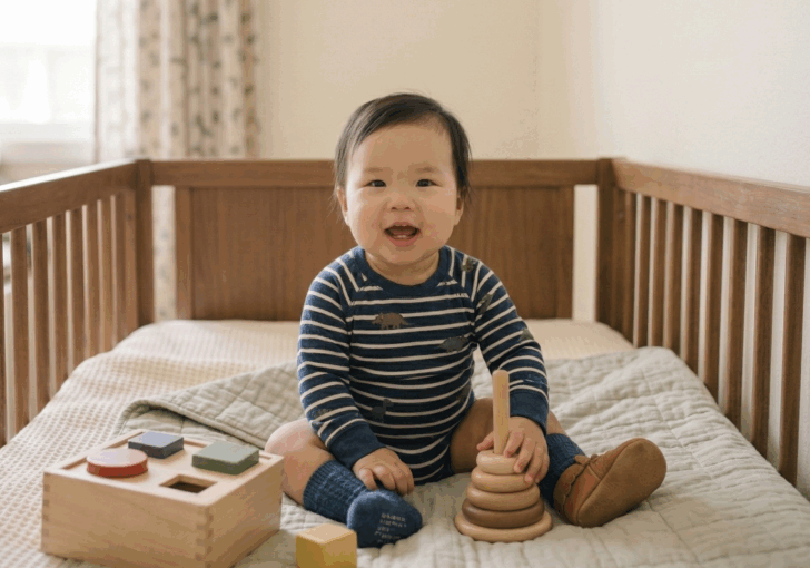 這個階段的寶寶可能會因為出牙、翻身等影響睡眠質素。白天可以幫BB訓練大動作,以及用牙膠舒緩出牙仔不適。