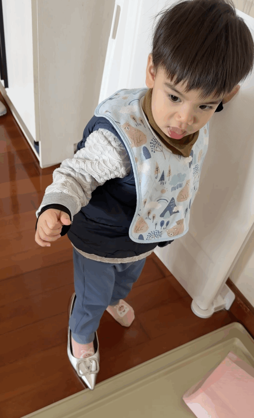 當孩子學會開門,媽媽的「私人空間」宣告終結!不管你是在廁所還是房間,他總能敲門大喊「Mummy」衝進來探險。只要馬桶蓋沒關好,昂貴的護膚品隨時下一秒會在馬桶裡。看著狗狗跟兒子搶玩具、甚至咬爛玩具,同時要好好教導兒子。那種手忙腳亂、全家亂成一團的崩潰感,正是媽媽們最真實的修行日常。但當看見孩子蹣跚地穿上她的高跟鞋、學她走路的模樣,那份純真的好奇與可愛,瞬間被溶化。