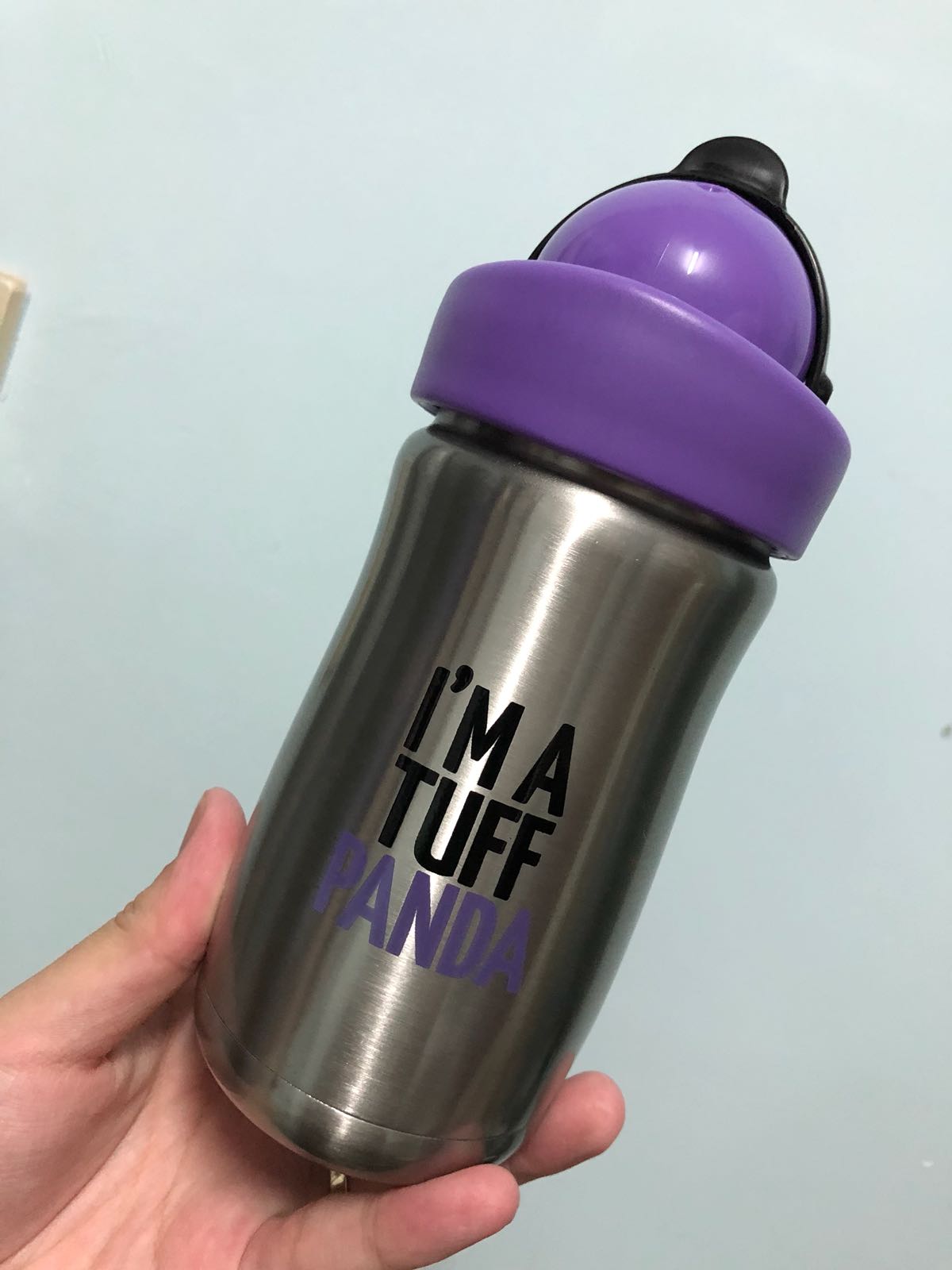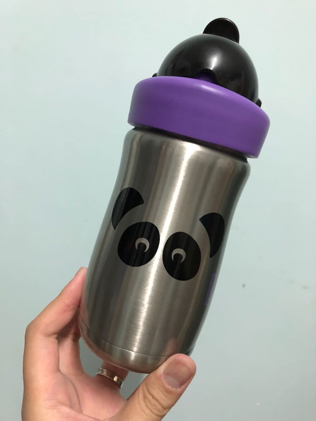 到了比較大,18個月大,還可以選這款「不銹鋼吸管杯」,這款也是有保冷功能的,可是這有 300ml 的容量。還有,這可愛的熊貓樣子,也太可愛了吧?