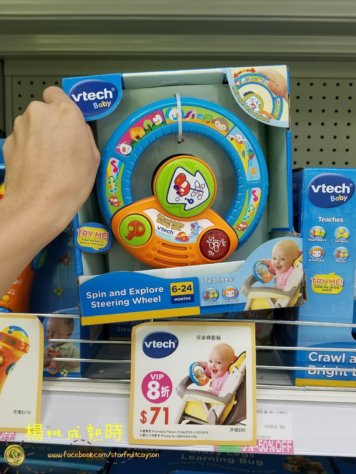 全線vtect玩具都特價發售,車呔玩具是9成小朋友都喜歡的,$71就有一個囉,安裝在嬰兒車上給小朋友玩吧!