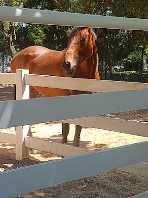 佛誕假期, 一早相約好了朋友到屯門公眾騎術學校睇馬馬, 其實早一天QB才有點點傷風發燒, 本來也掙扎好不好爽約, 但小女孩表示很想去, 而早上起來見她精神好轉, 也沒有再燒, 決定如舊前往. 這天氣温高逹35度, 熱得要命, 不想再折騰乘車, 所以Call了車, 地點在屯門蝴蝶灣附近, 亦有小巴和巴士到逹的, 場內也有公眾停車場.