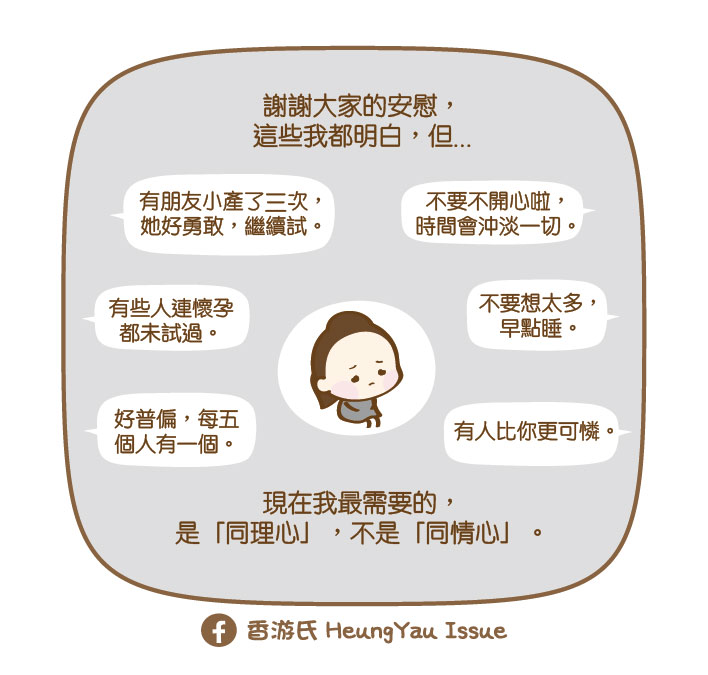 *讓大家知道,如果身邊有家人或朋友經歷小產,請拿出你的"同理心"細心傾聽。