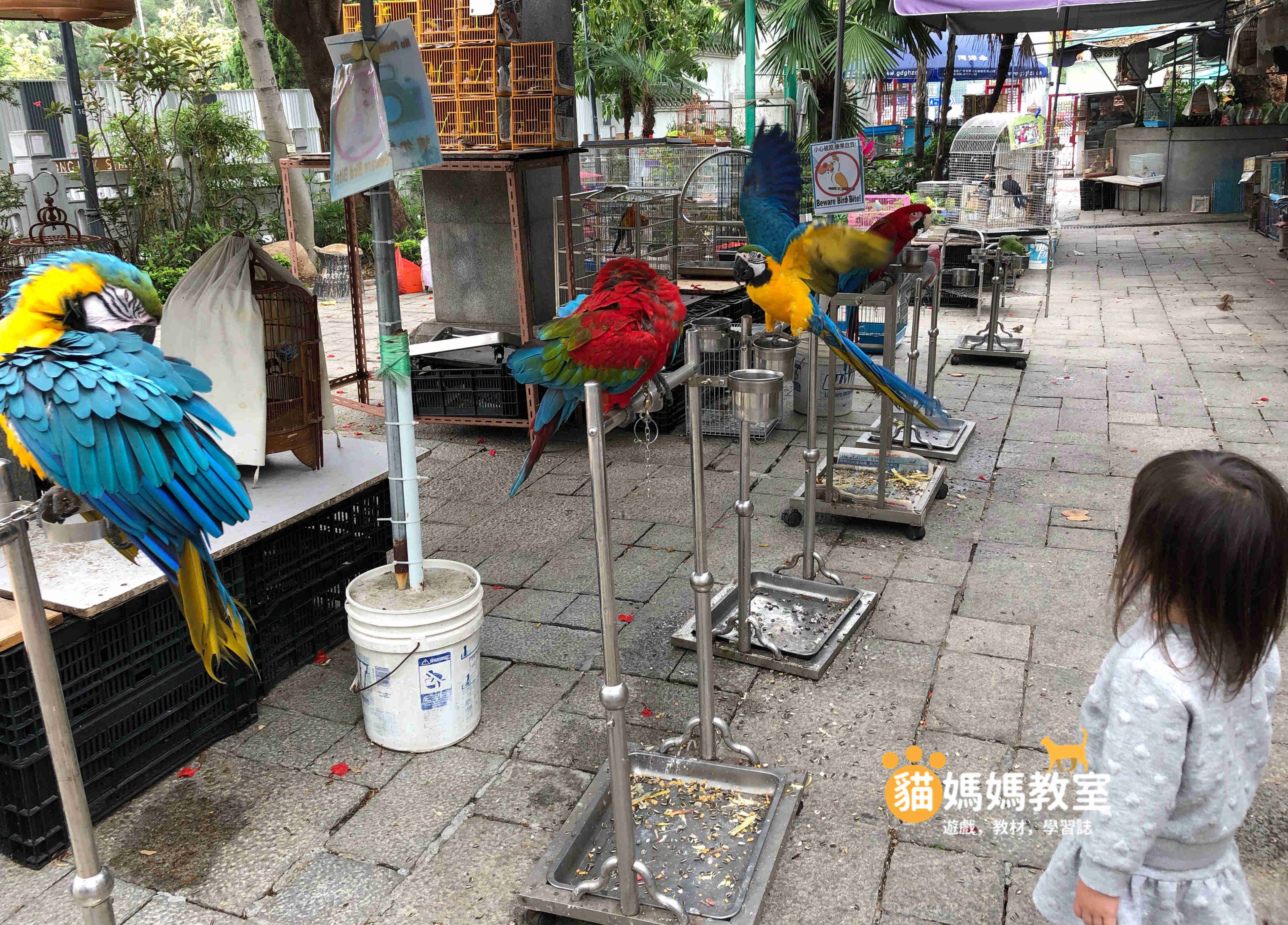既然妳想知道,我們便一起入去學習一下、找答案吧!一走進雀鳥花園竟然見到四隻大鸚鵡,可讓貓家姐近距離觀察!這個時候,我便指給她知道鸚鵡的翅膀、尾巴、嘴部等等在那裡。她眼見那麼多鳥類亦顯得相當興奮!