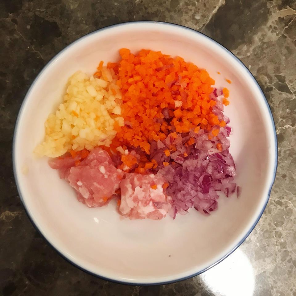 豬肉碎 ,蘋果 ,甘荀 ,洋蔥 ,胚芽米