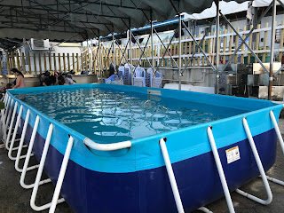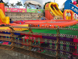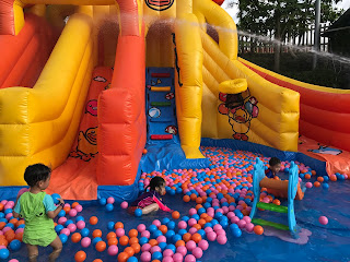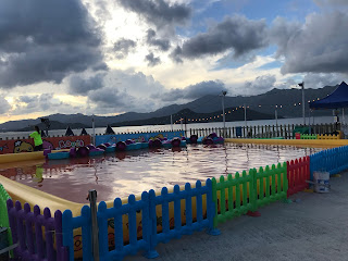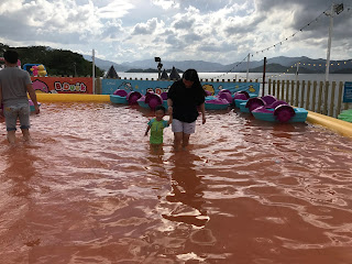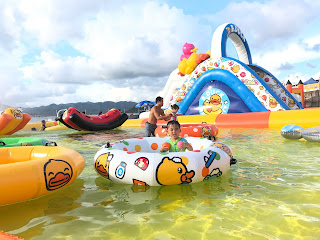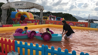 除了不同的充氣滑水梯外,這裡亦有數個小水池供小朋友玩玩水。水深不是很深的那種,不足95cm身高的Alfred都可以輕易在水中步行。