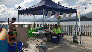 我們當天會燒烤及參加了B DUCK白石浴室派對第三節,即下午16:00-18:00時段,可以一次過於收銀處辦理。買完票後,需憑票到「大船池」旁的手帶換領處換領B DUCK白石浴室派對手帶,憑手帶就可以自由暢玩兩小時B DUCK充氣水上樂園了。雖然我們來的時候是假日日子,不過人流未算多,玩得舒服又盡興!