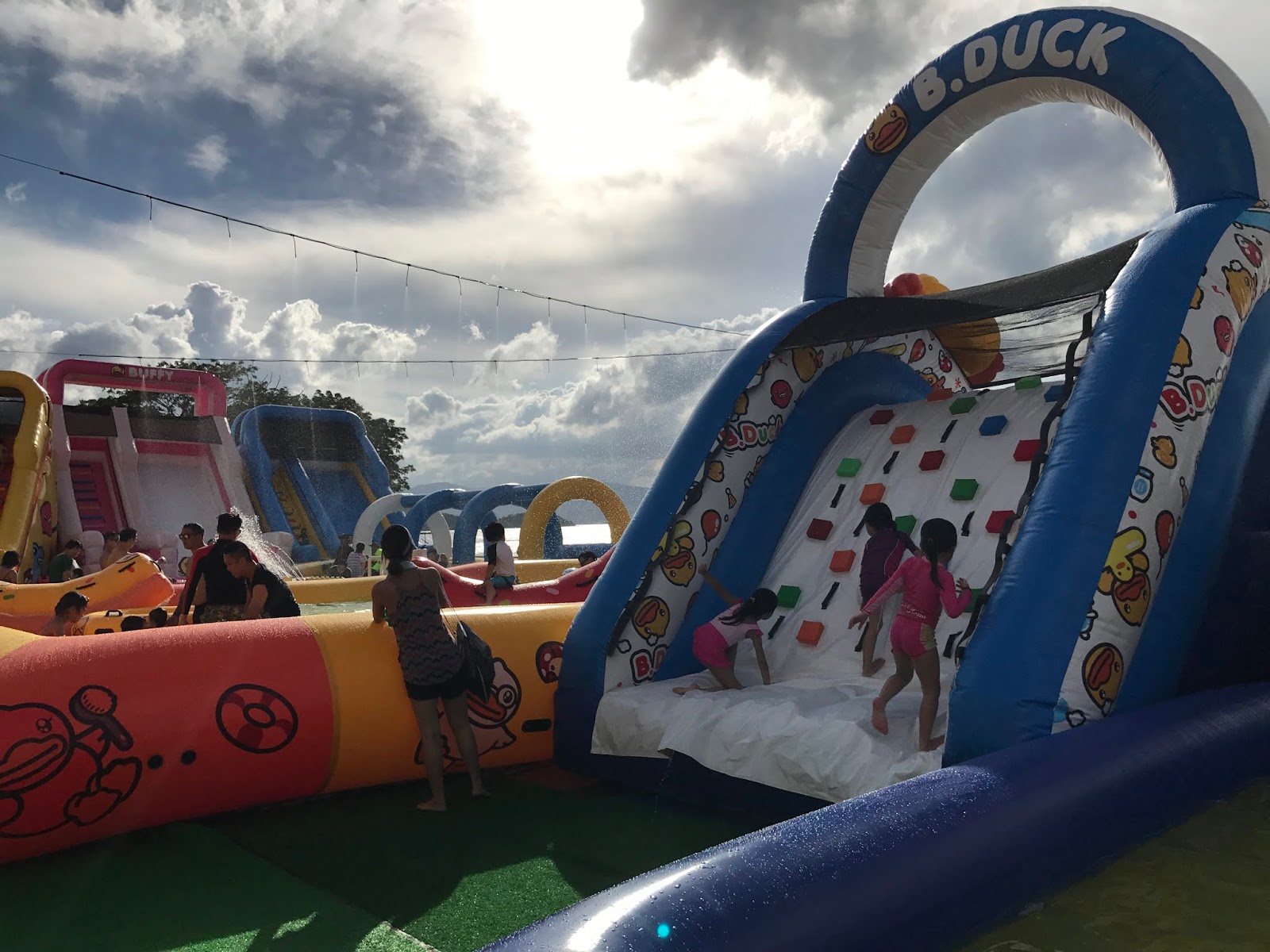望天打掛,終於望到好天氣了!當然要來個下水禮啦!我們最近就去了白石燒烤樂園全港首個大型B DUCK充氣水上樂園玩水了!雖然白石燒烤樂園已經第三年舉辦水上樂園,但媽媽我還是第一次去,好玩度爆燈呀,簡直讓我們玩。瘋。了!!!