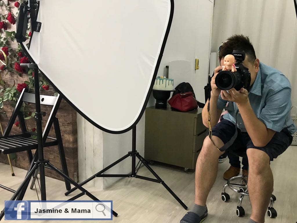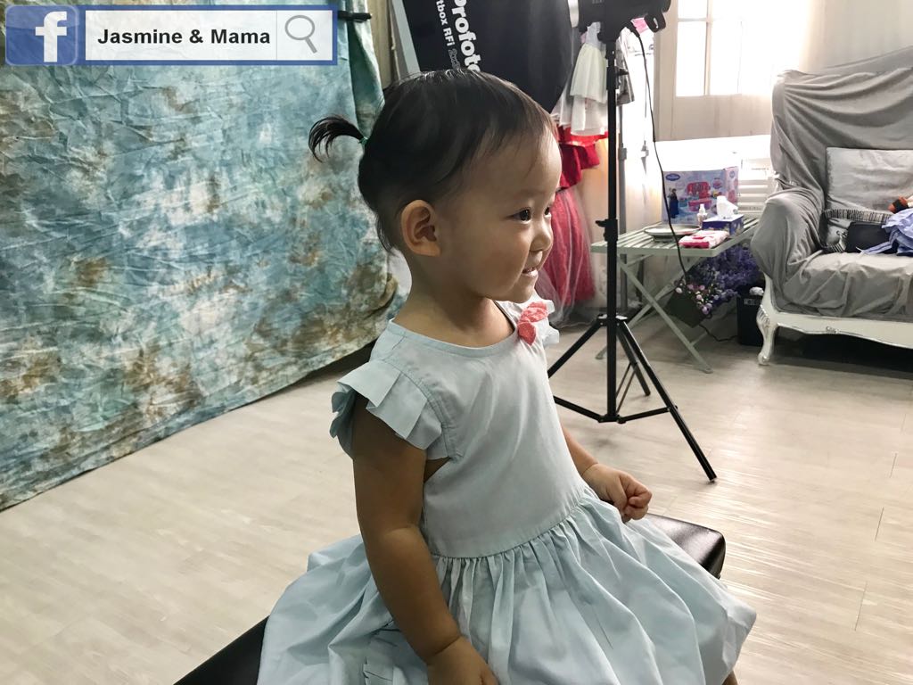 Warm up 後便開始拍攝了,Jasmine身旁的椅是給媽媽/爸爸坐的,因為攝影師們都知道小朋友可能會害怕,於是安排家長坐在身邊,好貼心啊!