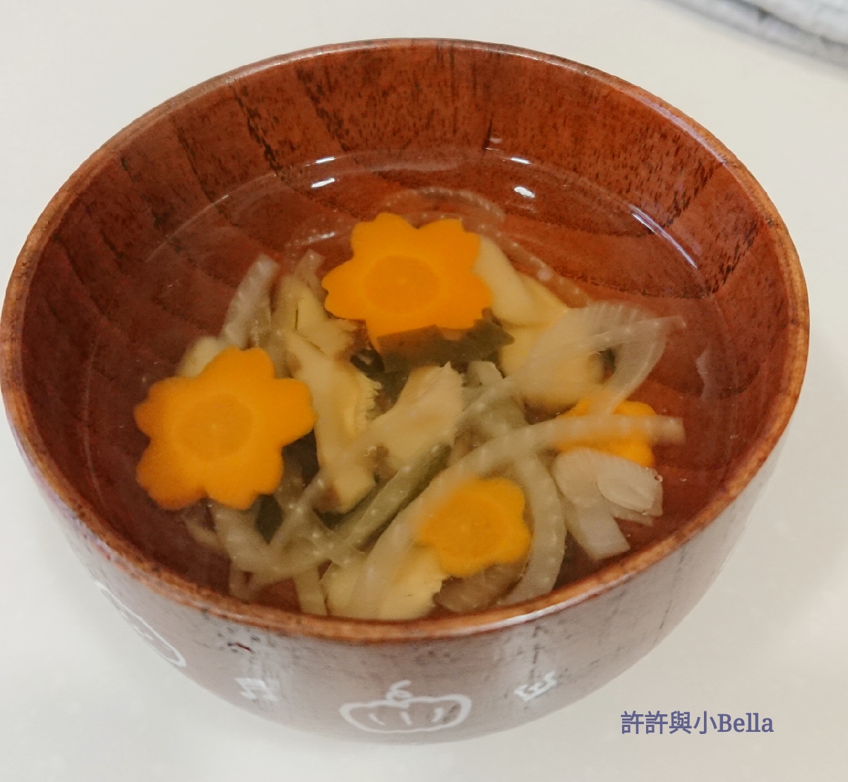 配料加除了昆布香菇,也加入洋蔥及紅蘿蔔。