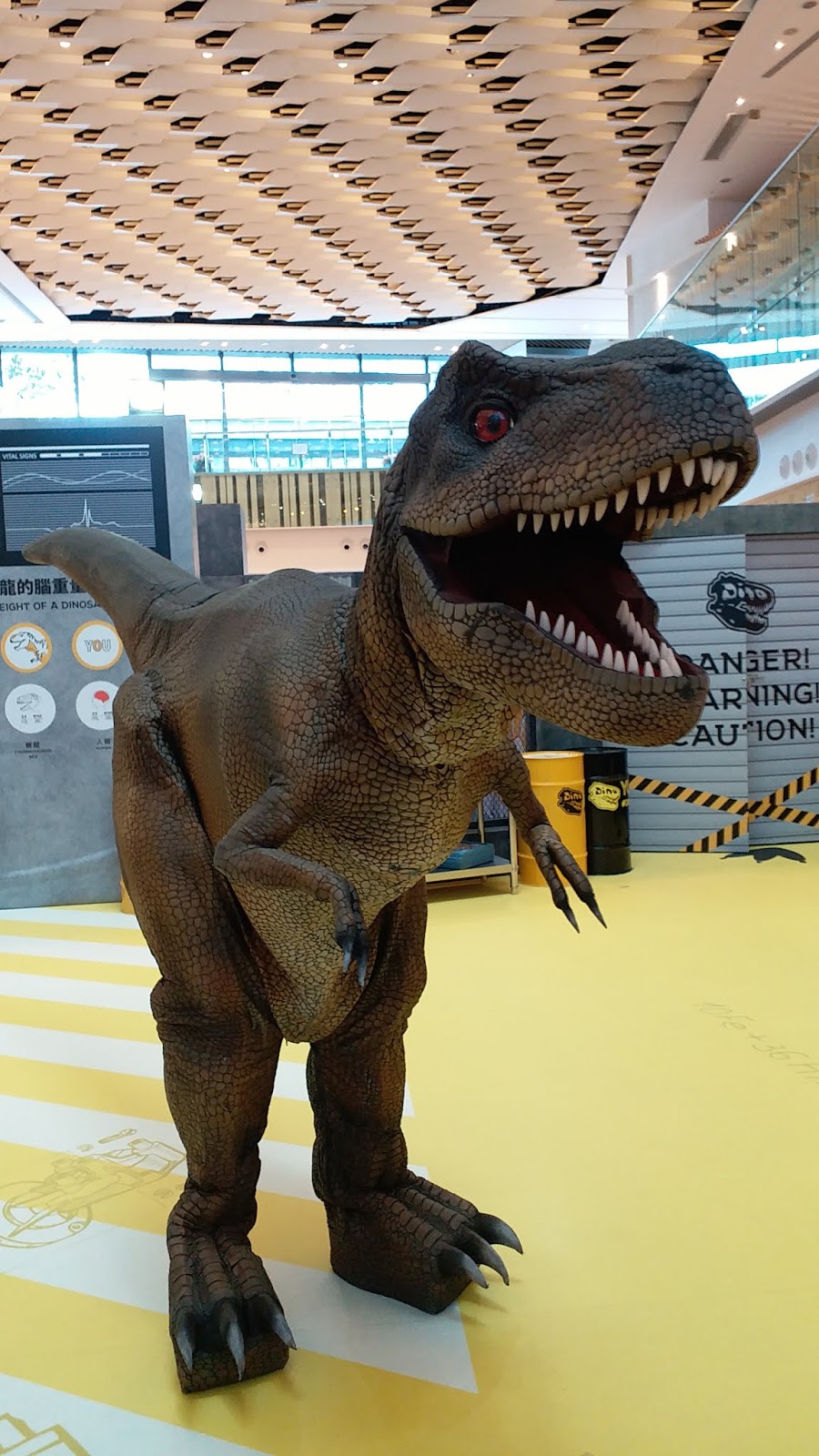 一踏入恐龍互動館,就有個超巨型嘅凶猛暴龍頭,暴龍頭眼皮會開合,瞳孔會放大縮小,精細逼真,仲會發出轟轟聲響。小b完全唔敢行埋去,驚暴龍會食左佢。