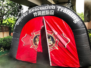 ▲之後,小朋友除了要選取正確的「逃生三寶」外,亦要身陷火警現場(模擬煙霧體驗區)拯救身陷火場的災民(由家長扮演)XD