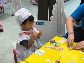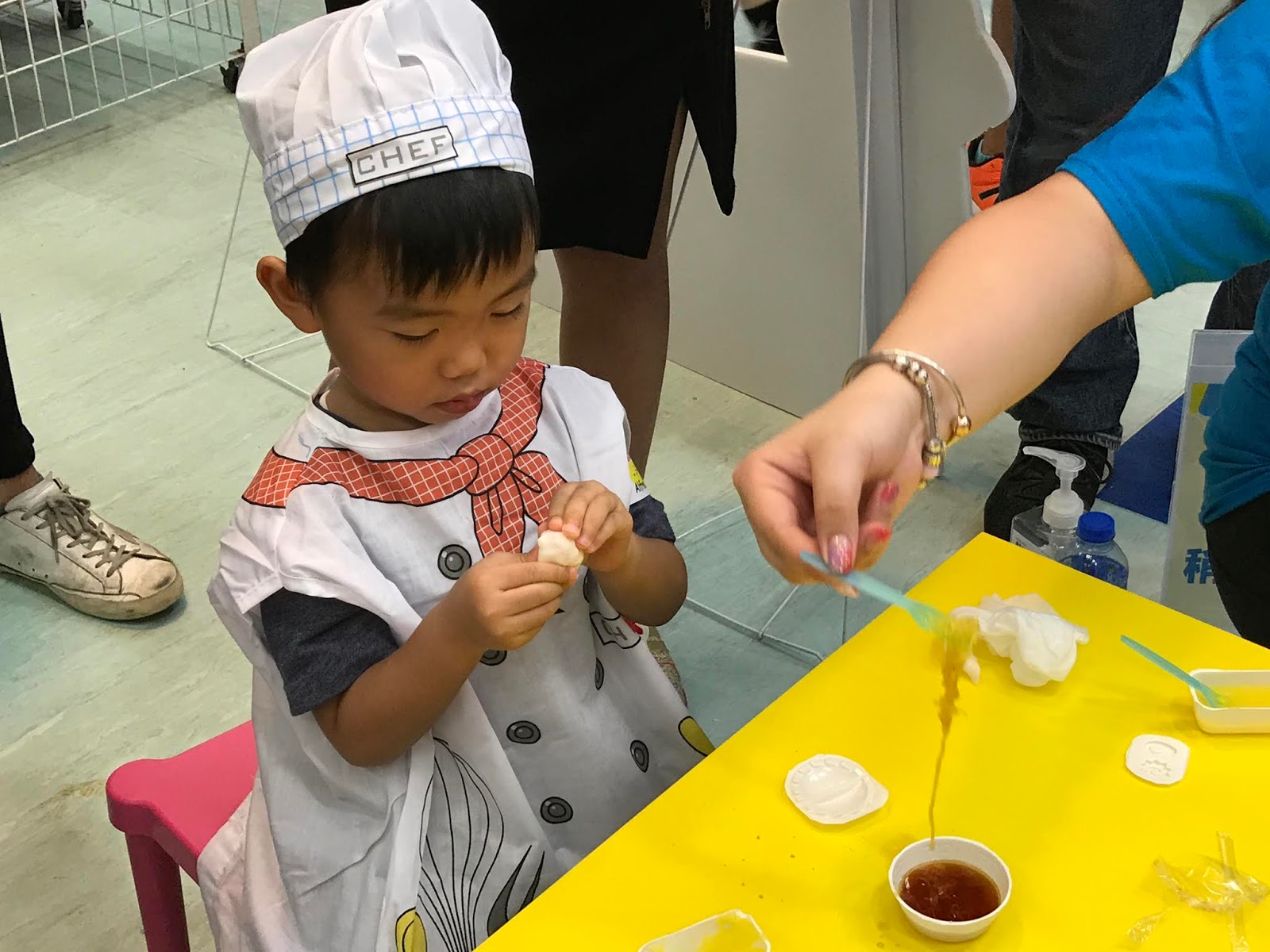 這個免費遊戲攤位絕對滿足小朋友愛模仿大人煮飯的行為,除了可穿著廚師服飾外,亦可考驗小朋友手眼協調(因為用具比較小巧),完成後,小朋友更可品嚐自己做的食物呢。