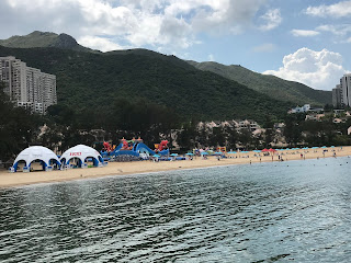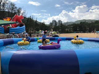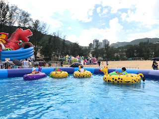 每年一度暑假愉景灣的大白灣沙灘重點活動又來了!今年最囑目莫過於有三條環繞的小恐龍滑水梯,還有其他適合小朋友玩的遊戲,家長更可以在紅色帳蓬換領處,換領遊戲券和小朋友一齊挑戰Q版運動會!