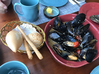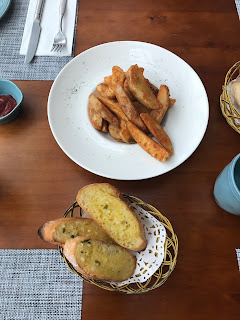 因為我們已吃過午飯,所以下午茶時段不想吃得太飽,而當天店員推薦我們吃雞及青口,我們最後叫了「白酒香草煮青口配蒜蓉包」及「炸薯角」來吃。其實份量是足夠的,但味道真的非常一般。我們星期日的時間去,每人最低收費是$200,如論食物味道及價錢比較的話,性價比其實不高。但如果論環境及玩樂設施,其實接受程度會提高一點,真的視乎家長需求(哈哈)~