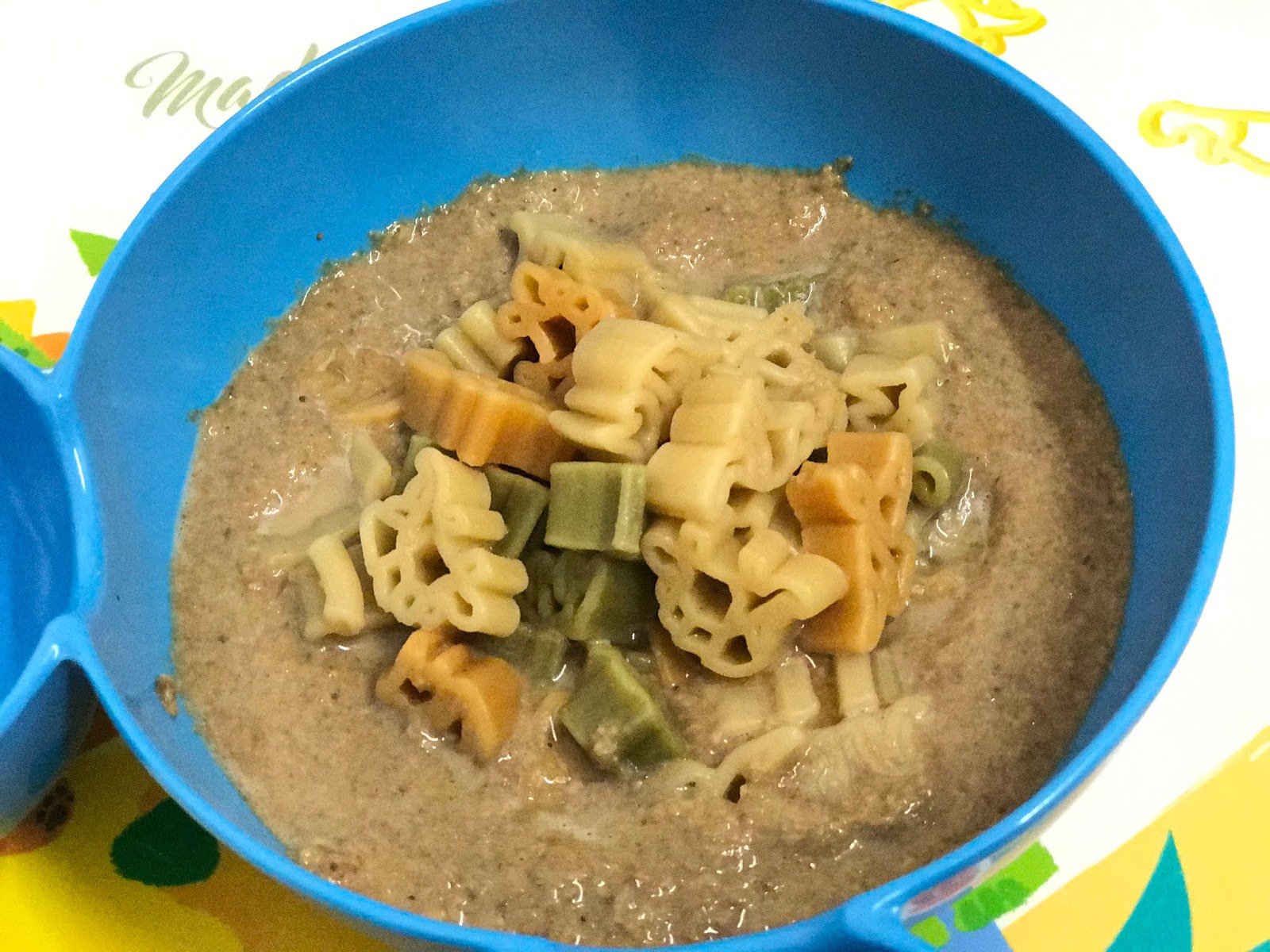 Alfred越大越喜歡吃粉麵/意粉,當我每次問他,您今天午餐或晚餐想吃飯或是麵/意粉呀?他都一定會答:意粉!我想吃有公仔圖案的意粉!所以媽媽我最近就做了個大人和小朋友可以一同親子共食的雜菇濃湯配有機意粉~