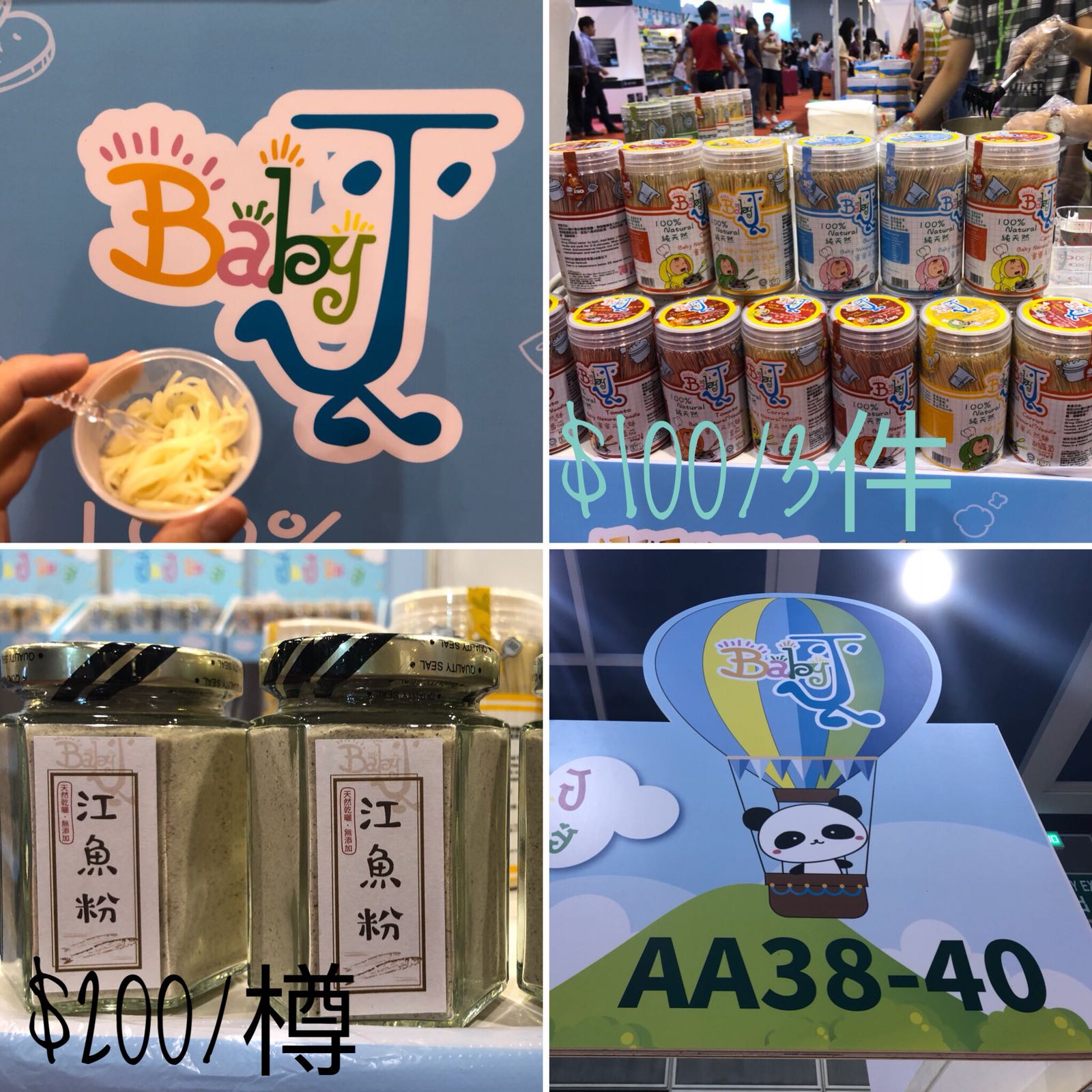 行下行下,唔少得都睇下食物啦!比嶠媽發現 Baby J (Booth:AA38-41),佢地嘅寶寶天然麵,仲有得即場試食,我問埋佢地係用咩湯底,原來佢地係用「江魚粉」來做湯底,配埋好好夾呀!寶寶天然麵,$100/3件,100%天然成分,新鮮蔬菜製造,對於挑食、少食同唔鐘意食蔬菜嘅bb非常有益,12個月大bb就食得!江魚粉都有得買埋,$200/樽咋!