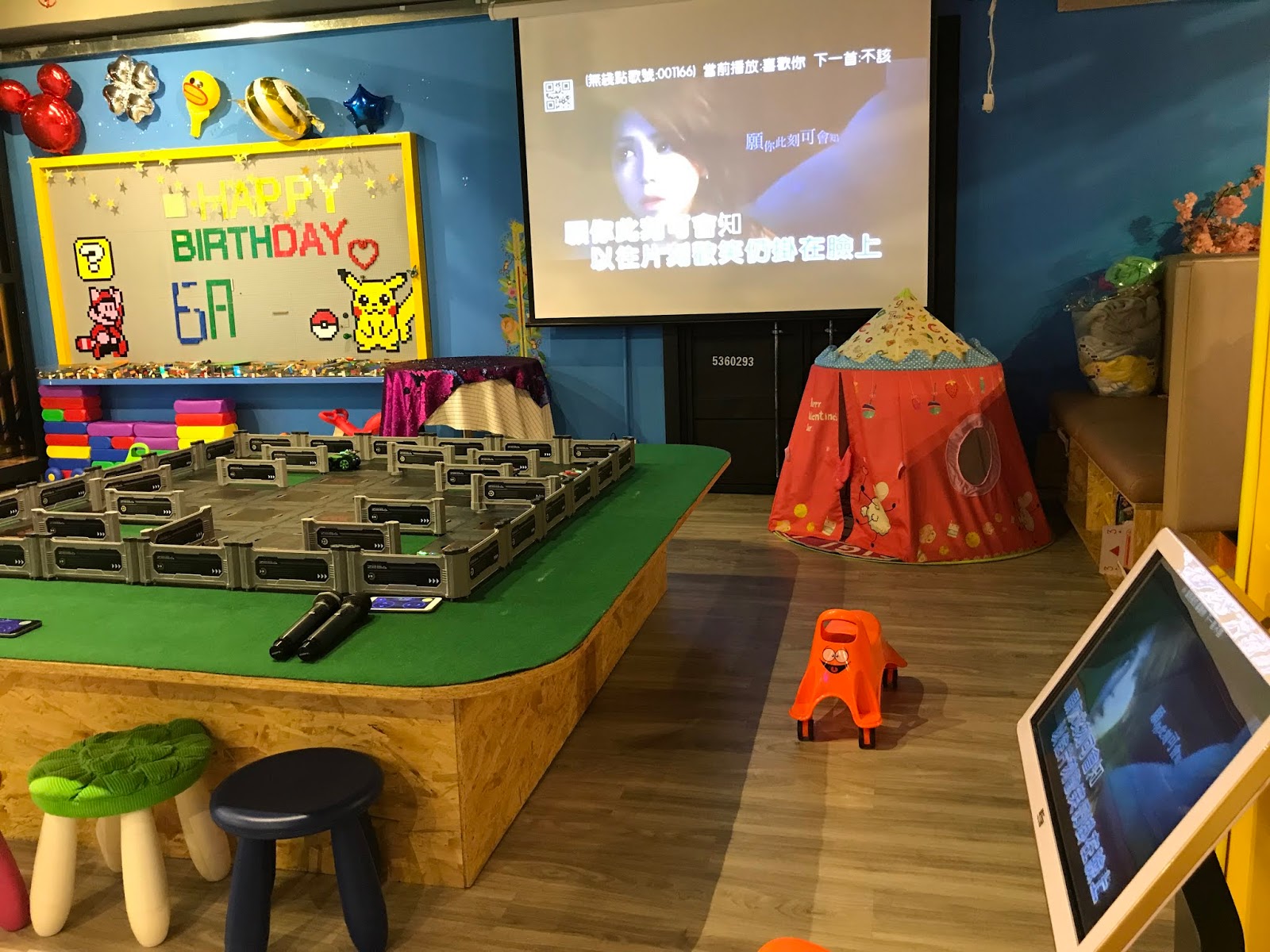 錄音唱K房及投影機:場內更設有台灣超流行的獨立唱K房,媽媽們在房內唱歌,又不怕打擾到出面正在玩樂的小朋友們,唱得非常舒暢!~如不想自私唱的話,亦可以用電腦點歌於投影機下一同高歌!