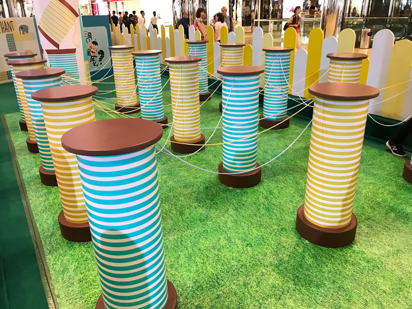 內容:考驗小朋友身手及體能。小朋友要於限時內挑戰書蟲小迷宮、七彩繩網陣及驚險獨木橋等。