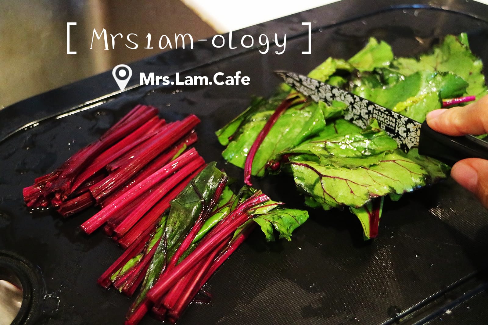 Step3/紅菜頭葉切條、紅菜頭切粒。