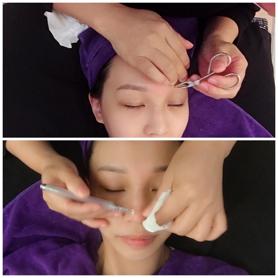 然後一邊幫我修眉一邊用蒸臉機蒸臉,令我毛孔張開一陣針清更容易更乾淨。