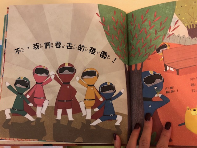 以搞笑形式講返幼稚園有咩做,描述小朋友初頭唔想返學,中間知道返學原來好有趣,到最後有一班超人走出嚟話「我哋要去幼稚園」!我每次跟超人做手勢,加誇張啲講我哋要返學呀!唯b都笑得好開心,而家朝早會同我講一次「我要返學呀!」