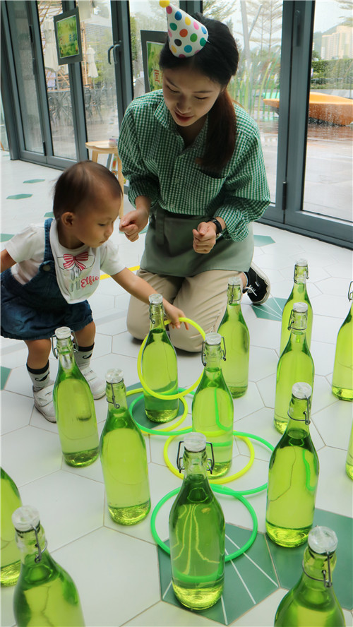 用幾個小圈圈,掟中玻璃樽就算贏,林小姐咁細個,所以佢係負責擺落去嘅啫!