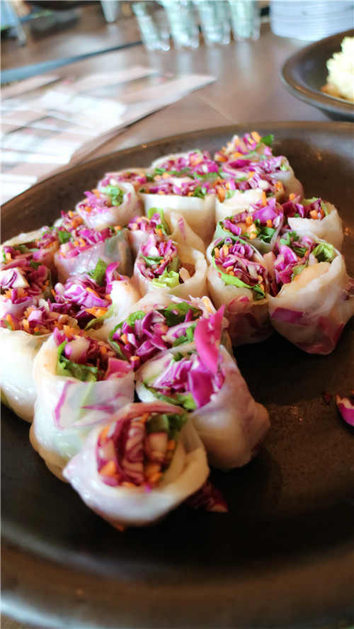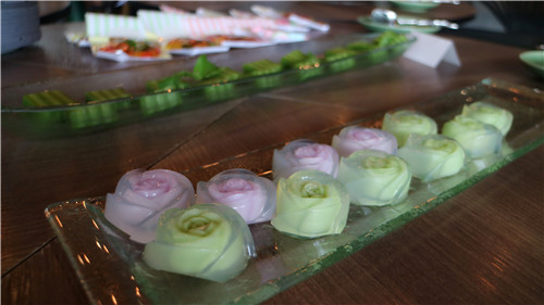 烤豬肉鮮蝦米紙卷 、三脆柚子沙律 、玫瑰水晶糕 、班蘭千層糕等~