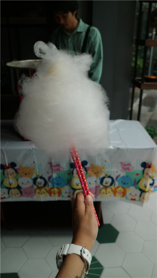 小朋友排好隊,等小丑姐姐送畀你波波啦,林小姐得到個粉紅色手花花,愛不釋手一直戴到夜晚都唔肯除!