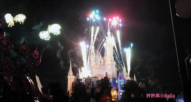 晚上的煙花,配樂終於是播英語的了,歷時有20分鐘,在園內也不難找到有利位置觀看,城堡夠大,所以煙花也蠻壯觀的。