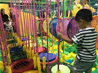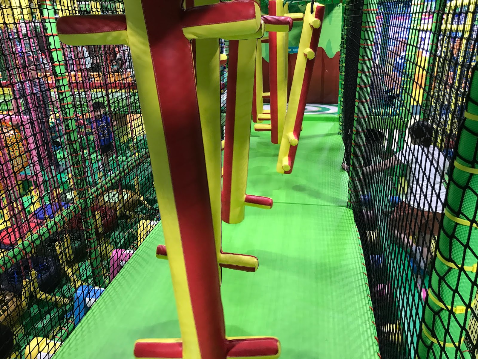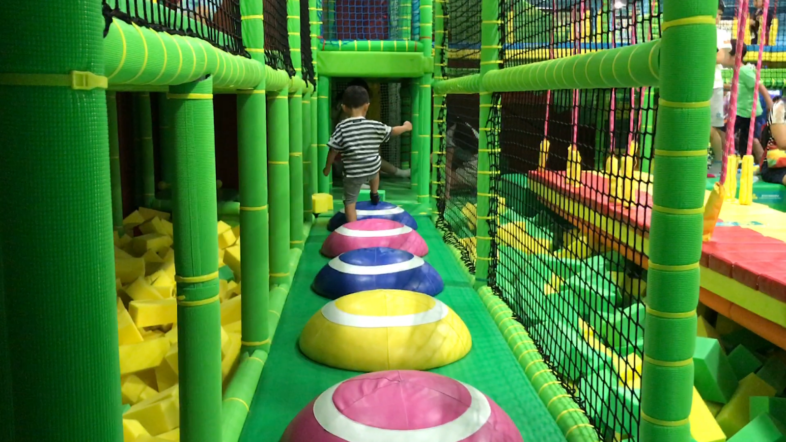 面積超大的彈跳迷宮,共分成上下兩層,每層都有超豐富的攀爬架或障礙設施。而且還有一個大面積波波池!說真的,真的超好玩!!!