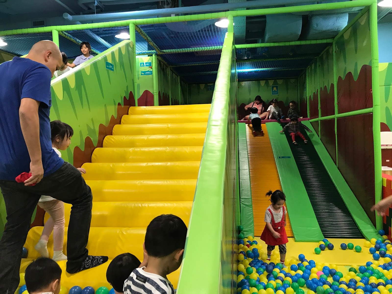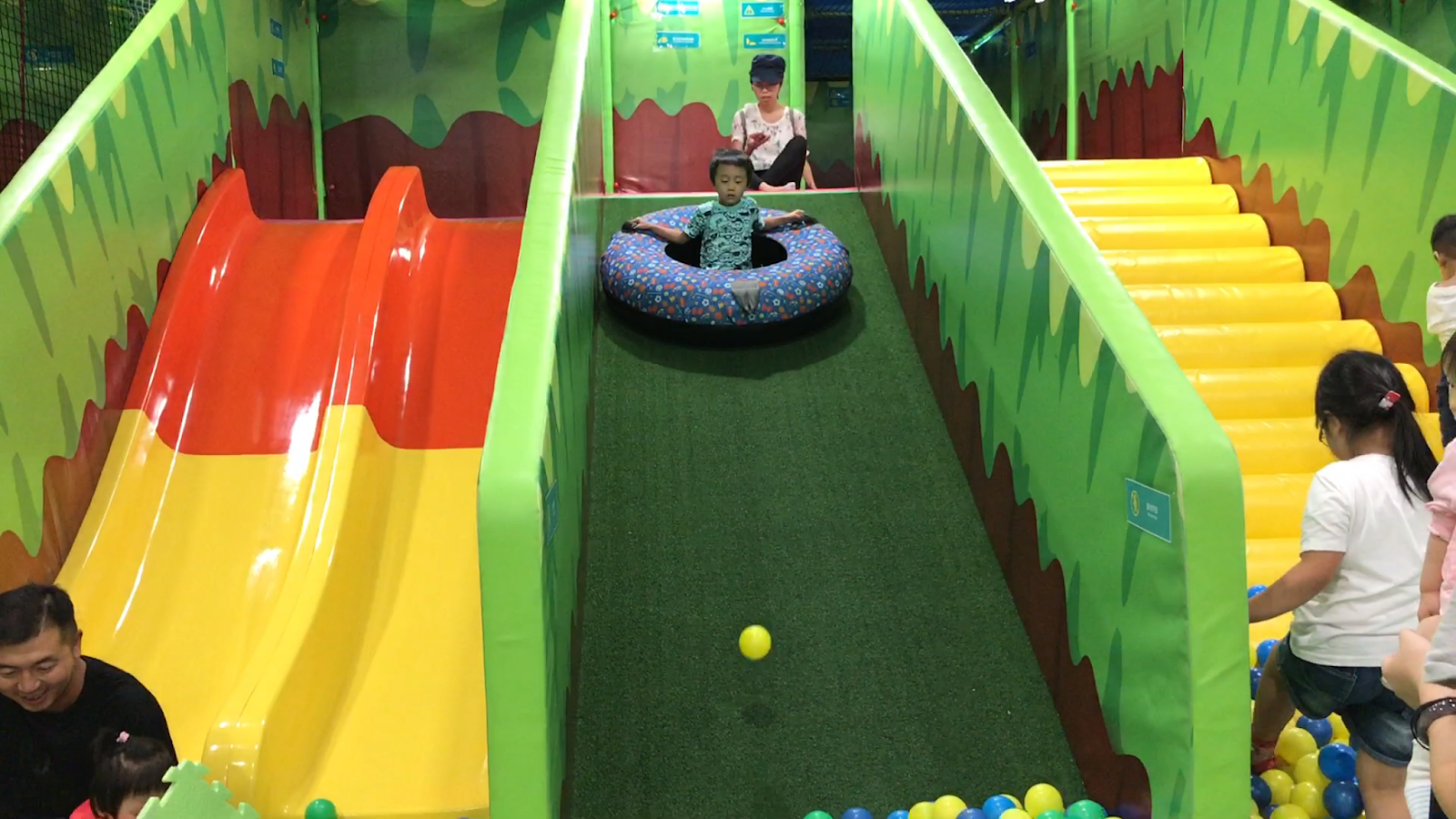 有波波池的地方,感覺是小不了滑梯呢!這裡的滑梯區滑梯也非常吸引,除了有波浪滑梯外,亦有香港少見到有的滾筒滑梯及室內仿草滑梯!!