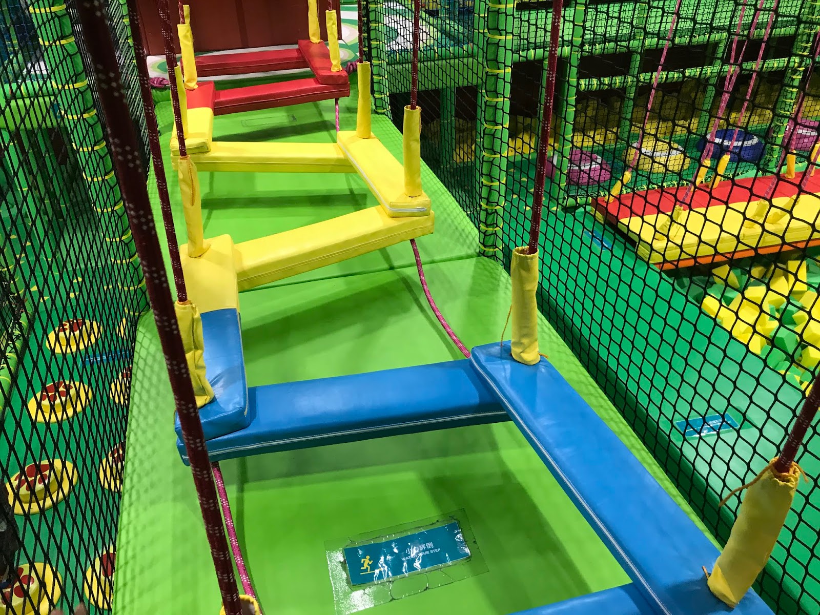 ▲下層設施有彩色繩網橋
