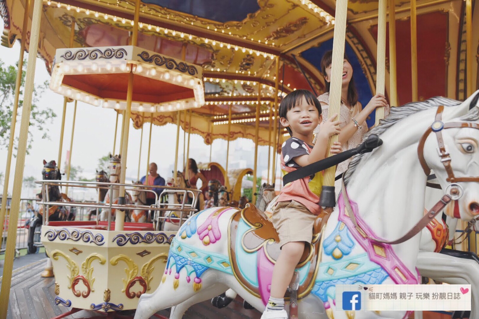 逛完博物館,天空終於放晴,那便可以去坐摩天輪了,太幸福!自門票調整自$20元後,一直想帶小火子去,$20元便可乘三大圈,超級化算!摩天輪旁邊還有旋轉木馬和滑梯,我們買了套票,不用$100就可同時乘摩天輪及木馬,度過了一個愉快的下午。