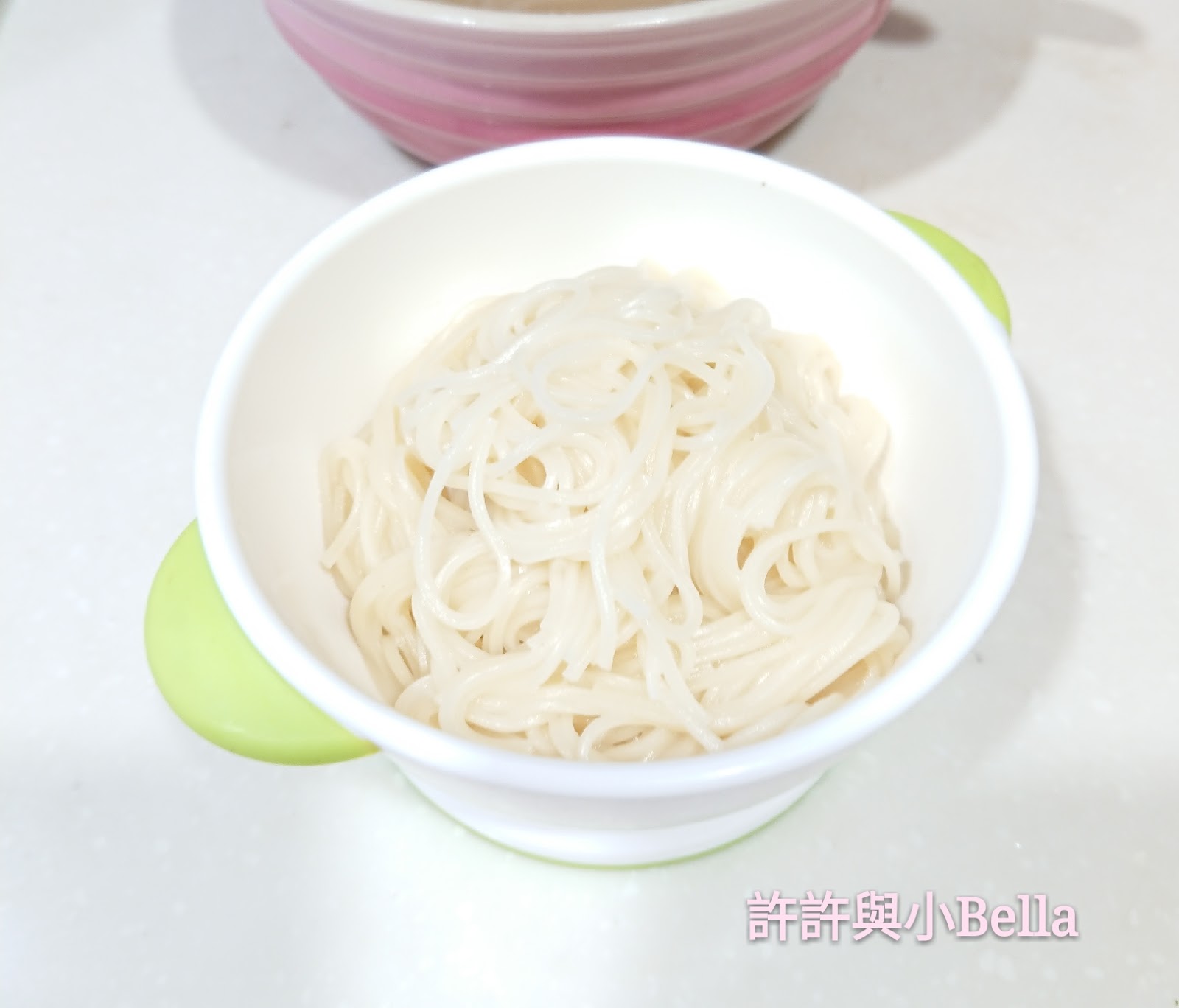 這款 「幼兒食譜:梨汁和風拌麵」,